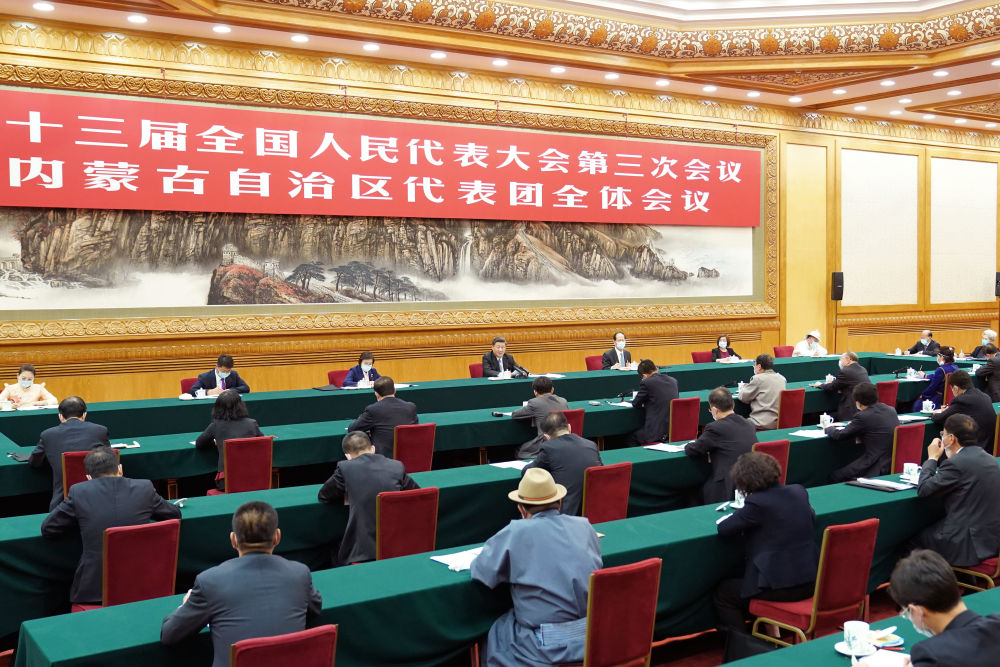 在认真听取大家发言后,习近平作了发言。他首先表示完全赞成政府工作报告,充分肯定内蒙古一年来的工作,希望内蒙古的同志大力弘扬“蒙古马精神”,坚决贯彻党中央决策部署,坚持以人民为中心的发展思想,坚持稳中求进工作总基调,坚持新发展理念,坚决打好三大攻坚战,扎实做好“六稳”工作,全面落实“六保”任务,坚决克服疫情带来的不利影响,确保完成决胜全面建成小康社会、决战脱贫攻坚目标任务,在新时代全面建设社会主义现代化国家征程上书写内蒙古发展新篇章。
