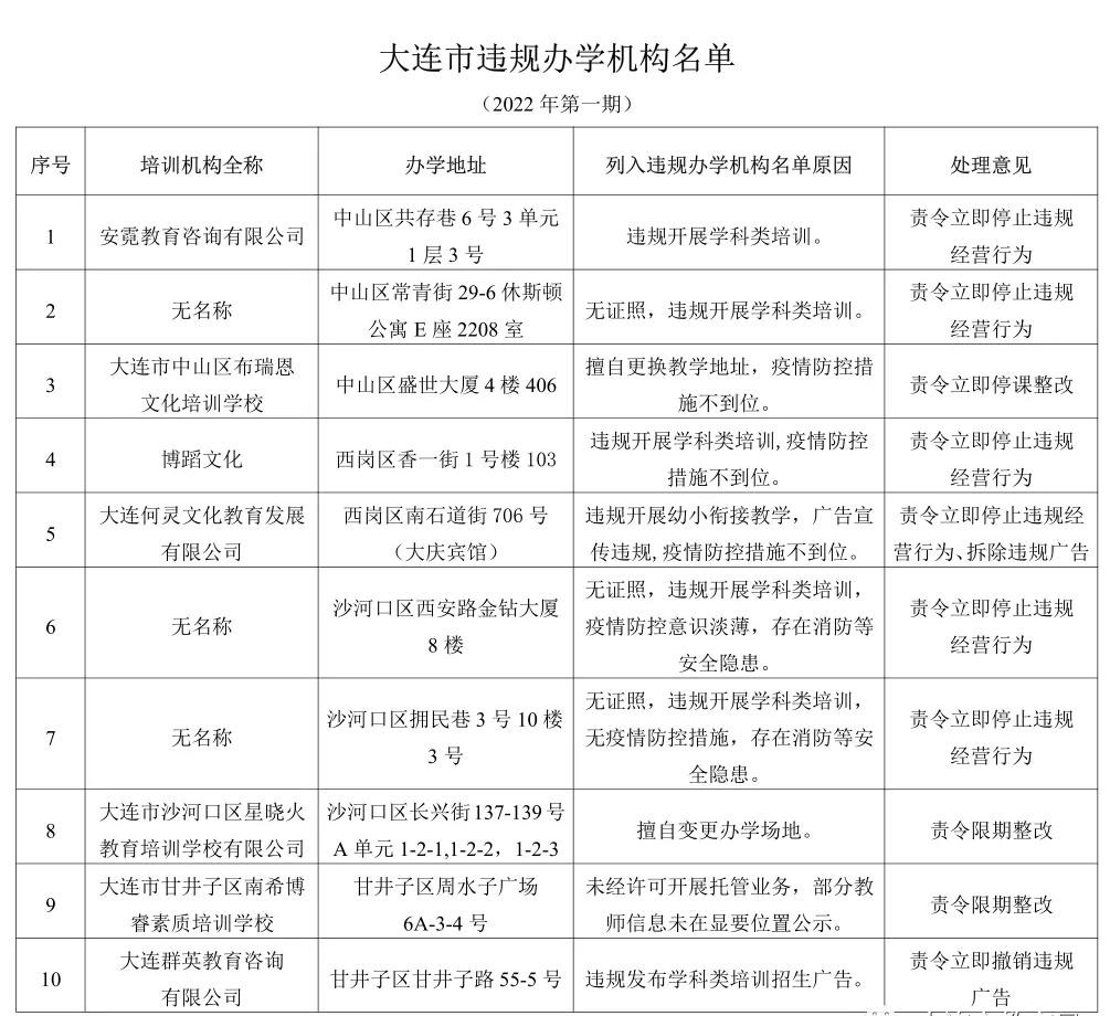 为贯彻教育部、省教育厅关于认真做好寒假期间“双减”工作的要求,大连市开展了寒假期间校外培训机构专项治理工作,各区市县、先导区有关部门迅速行动,全面排查整治校外培训机构违规行为。
